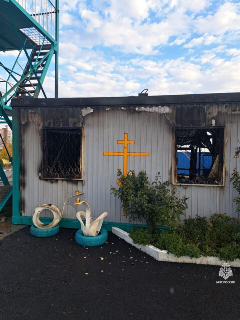Кадры с последствиями пожара в батайском храме. Тушение продолжается.