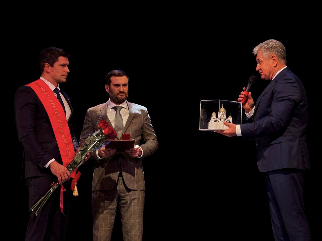 В Новочеркасске временно исполняющий полномочия главы города Николай Толмачев и председатель городской Думы Виктор Синюгин вручили космонавту и уроженцу казачьей столицы Николаю Чубу регалии почетного гражданина Новочеркасска.