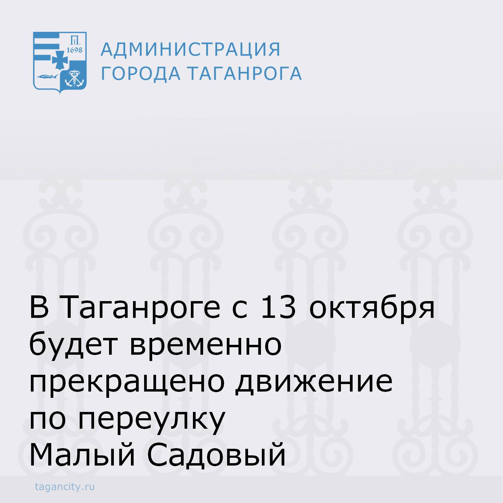 С 13 по 27 октября в Таганроге будет временно приостановлено движение транспорта по переулку Малый Садовый на участке от переулка Малый Садовый, 40 до улицы Лесная Биржа.