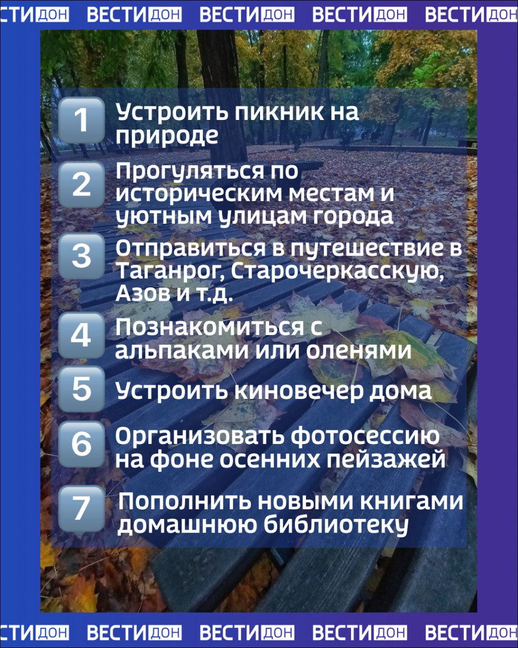 Меланхоличная, а для кого-то романтичная пора — осень. Чтобы холода и сезонные осадки не вгоняли в депрессию, наша редакция подготовила список идей, которые помогут максимально прочувствовать эти дни и поднять уровень дофамина! Пиши в комментариях, какие пункты хотел бы реализовать или уже реализовал.