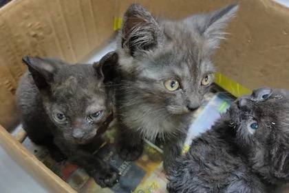 Волонтерская группа "Счастливчик" забрала животных. К сожалению, кошка убежала, а котята (их назвали Гермиона, Рон и Гарри) были доставлены в ветеринарную клинику. У них ожоги, истощение, и они проходят лечение.
