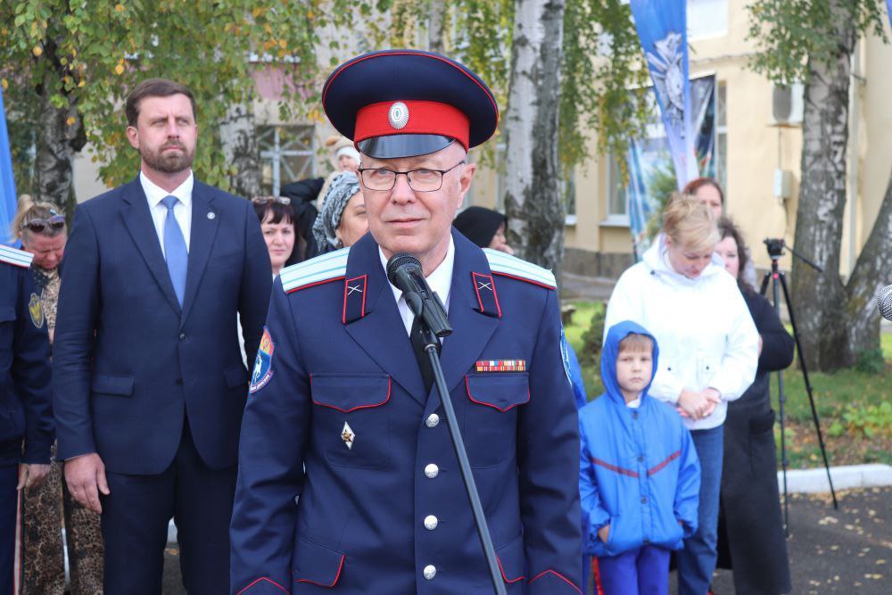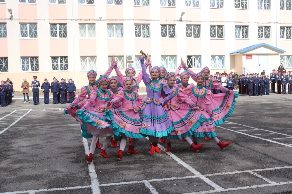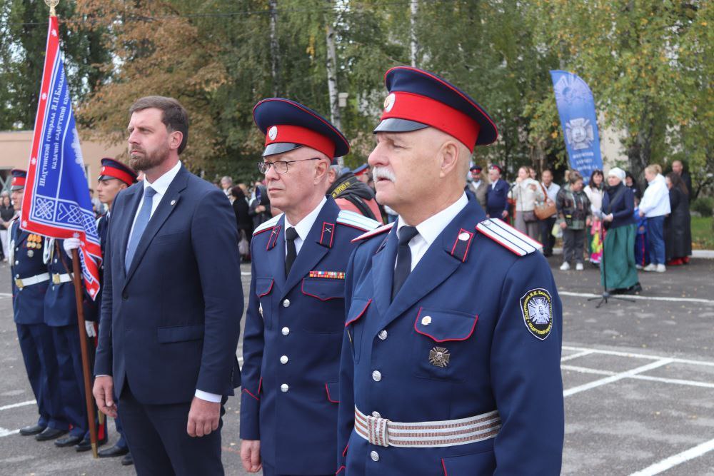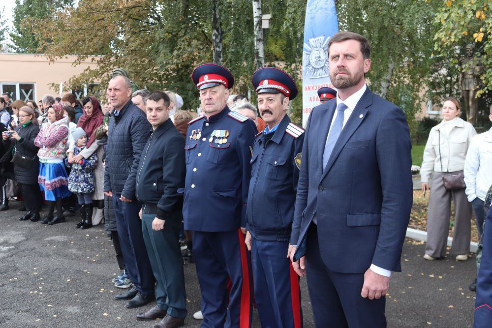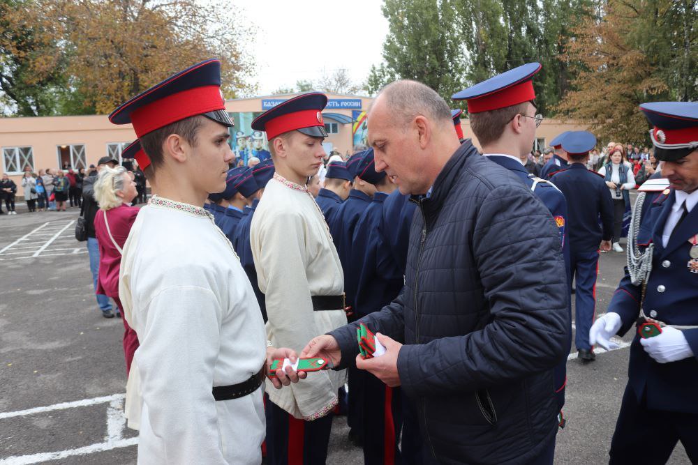 Почётные гости: заместитель директора Департамента по делам казачества и кадетских учебных заведений Ростовской области Александр Лазарев, председатель городской Думы Максим Голодов, заместитель главы администрации Александр Болтенков и депутат городской думы Артём Долгопятов поздравили кадетов и вручили им первые зелёные погоны.