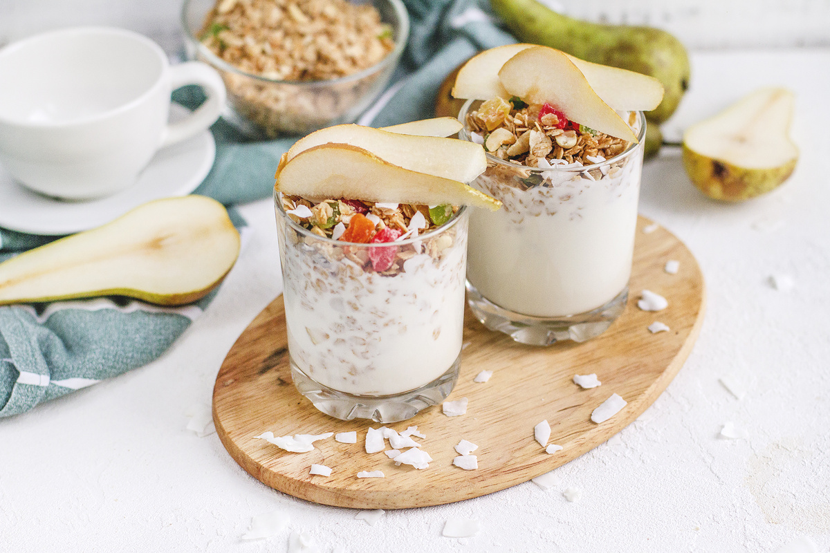 Гранола – это не просто хлопья для завтрака, а настоящая гастрономическая находка. Приготовленная самостоятельно, она поражает сочетанием ароматов и вкусов, которые раскрываются во время запекания. В этом рецепте использованы мед, орехи, корица и кокос, что придаёт граноле особую тропическую нотку. Затем добавляются сочные фрукты, которые сохраняют свою свежесть и текстуру. В сочетании с йогуртом и грушей получается удивительно лёгкий и быстрый завтрак, который подарит заряд энергии на целый день.