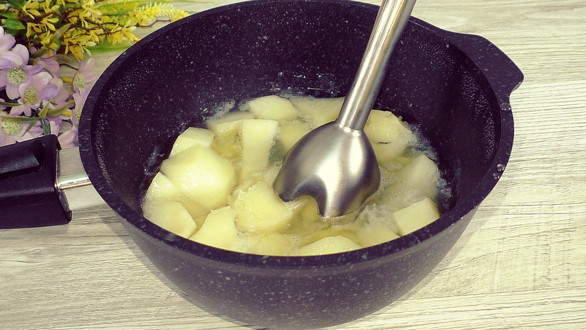 Процесс приготовления начинается с нарезки картофеля на небольшие кубики. Их нужно отварить в 350 мл воды до готовности. Затем с помощью блендера сделать пюре, не сливая отвар. Остывшую массу смешать с дрожжами, сахаром, растительным маслом и солью. Постепенно добавлять муку, замешивая тесто, которое должно быть мягким и эластичным.