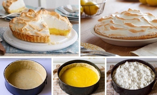 Для безе белки взбиваются с щепоткой соли до устойчивых пиков, затем постепенно добавляется 3 столовые ложки сахарной пудры. Теперь можно собирать торт: на корж выложите лимонный крем, сверху аккуратно нанесите безе. Отправьте в духовку: сначала на 15 минут при 180 градусах, затем увеличьте температуру до 200 и выпекайте еще 10–15 минут.