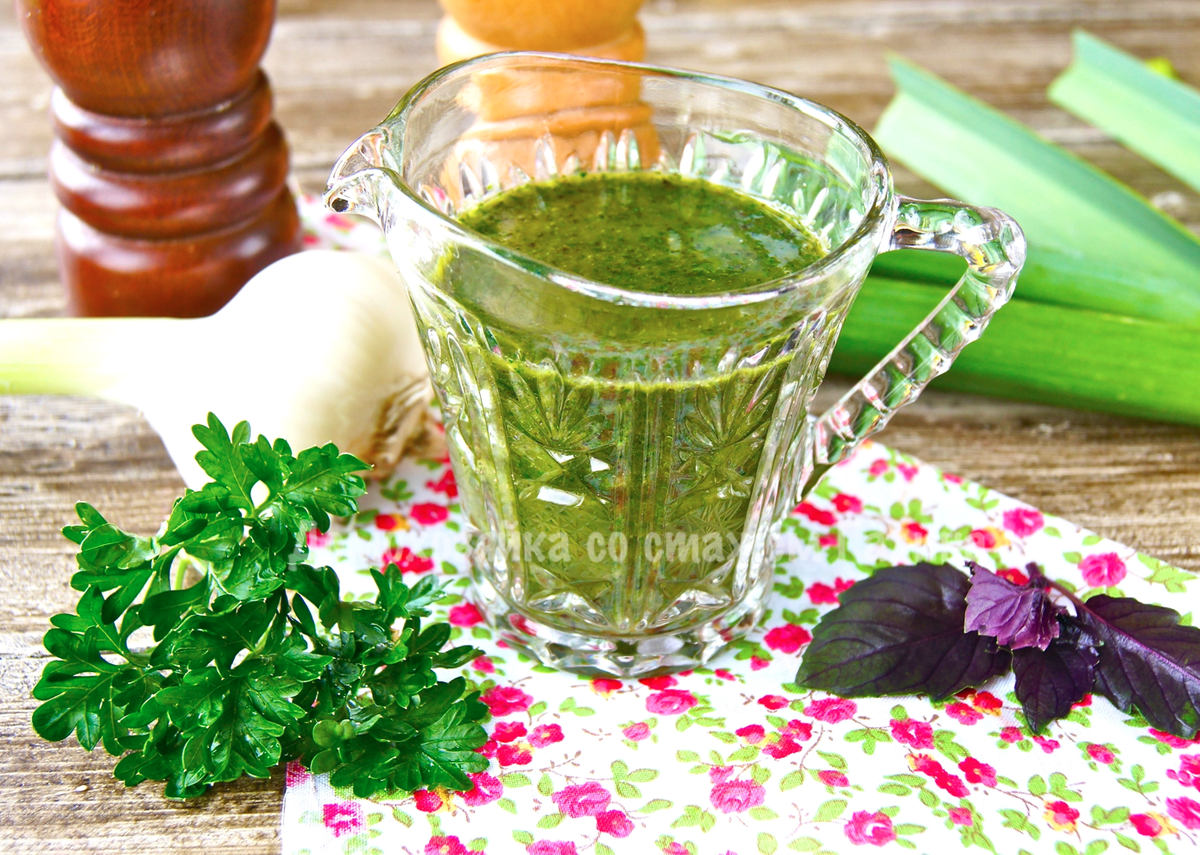 Обладая восхитительным вкусом и ароматом, этот соус может быть быстро приготовлен из разных видов зелени. В арсенале могут оказаться укроп, петрушка, базилик, сельдерей или кинза. А для насыщенного вкуса достаточно добавить несколько чесночных зубчиков, оливковое масло, сок лимона или лайма, а также немного соли и перца.