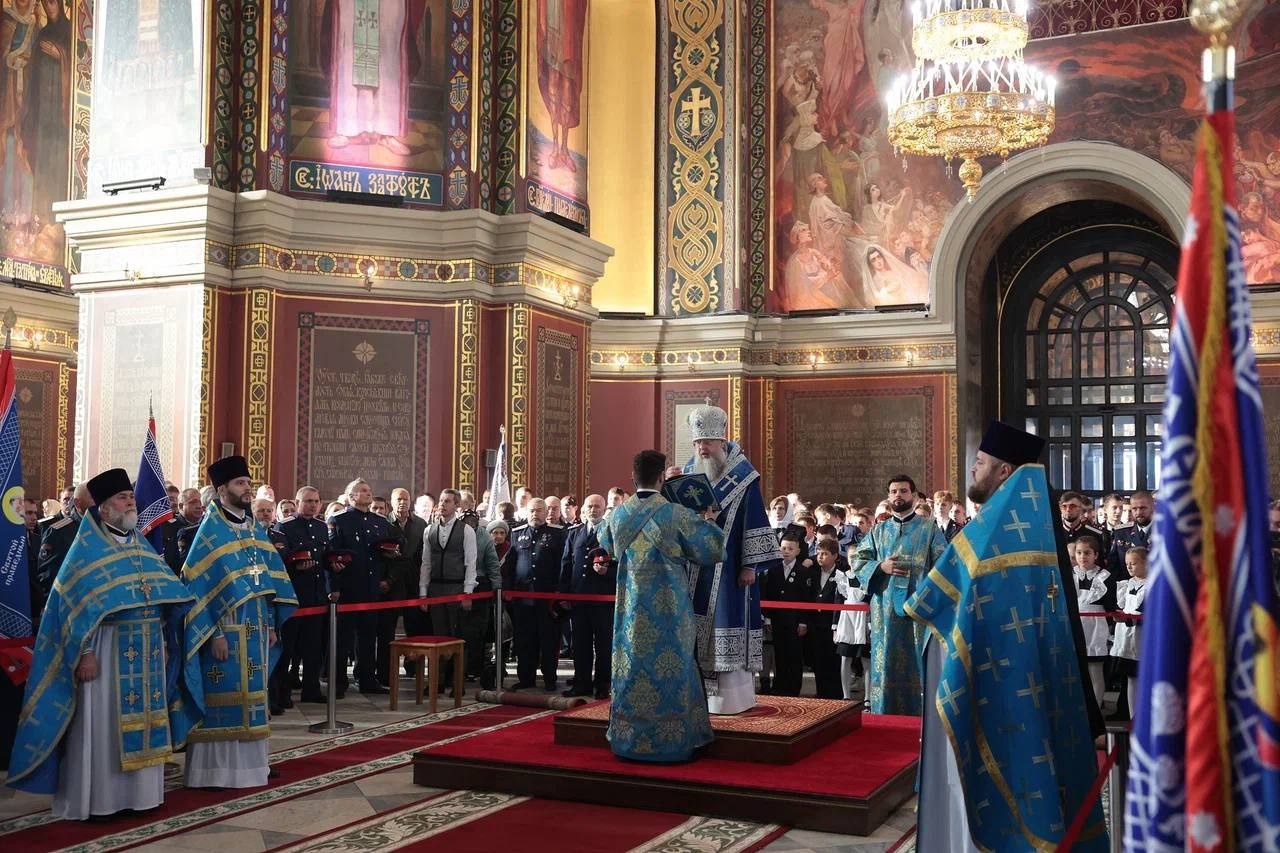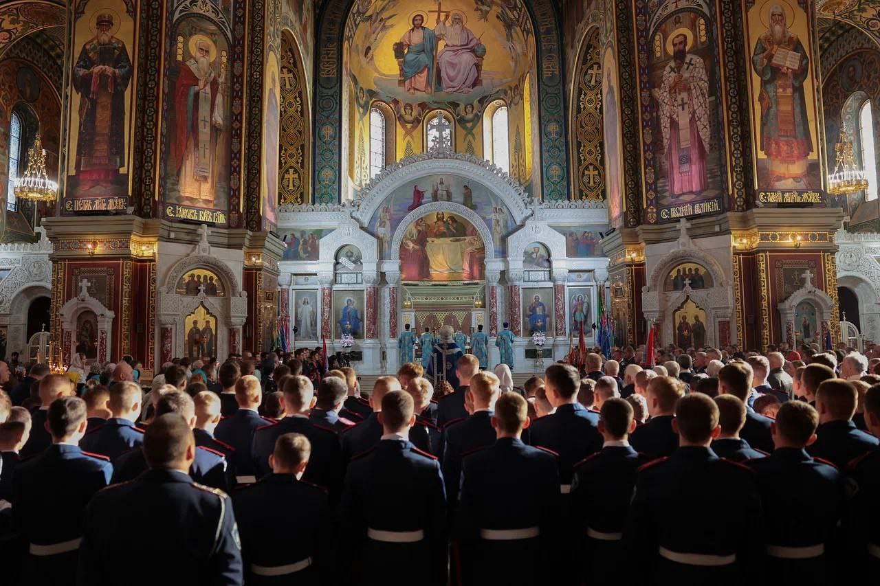 Праздничная литургия прошла в Патриаршем Вознесенском войсковом всеказачьем соборе в Новочеркасске — особом месте для каждого казака и для всех дончан. Здесь покоятся великие сыновья Дона — Матвей Платов, Василий Орлов-Денисов, Иван Ефремов, Яков Бакланов.