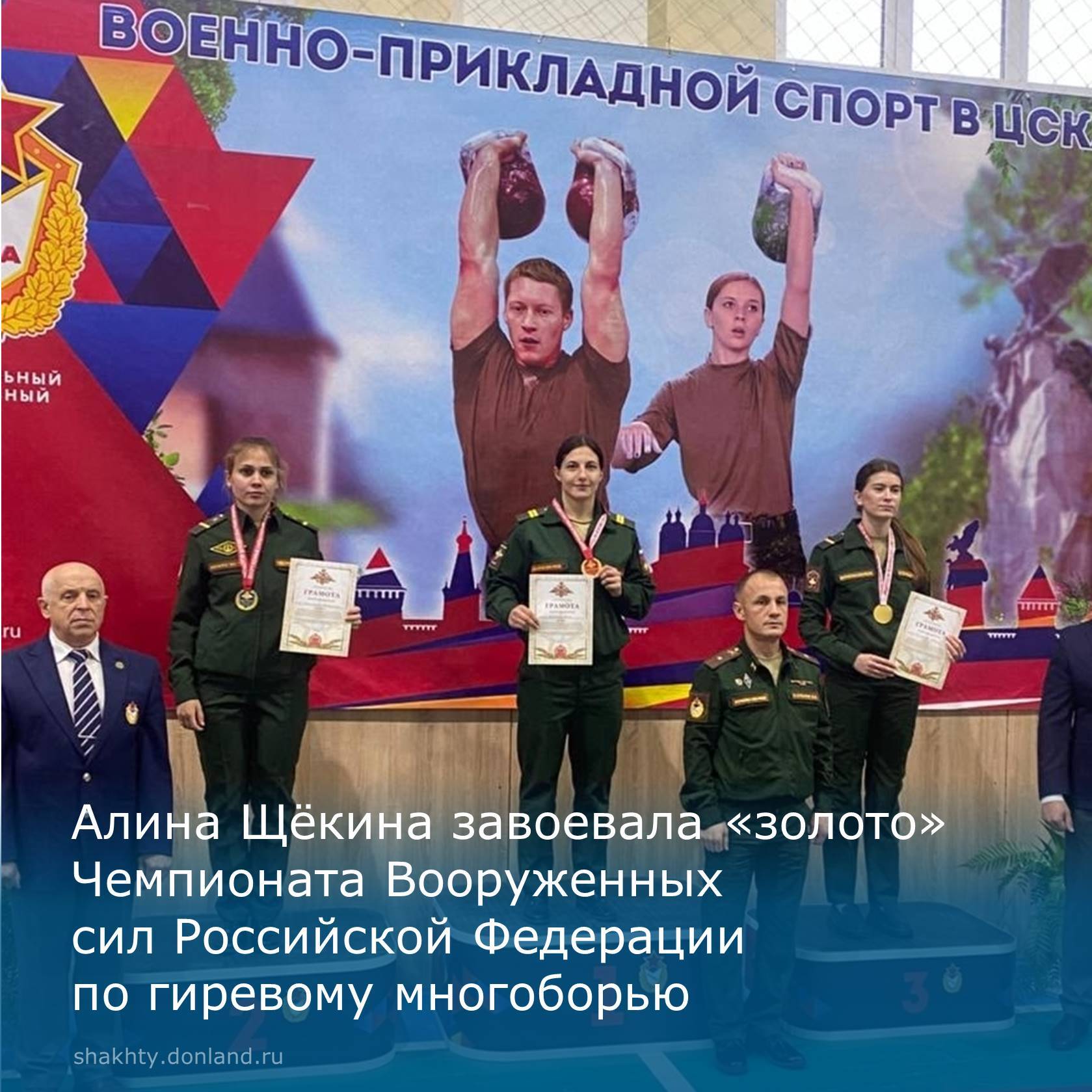Напомним, ранее Алина выполнила норматив мастера спорта, а теперь завоевала «золото» на чемпионате Вооружённых Сил. Тренируется спортсменка под руководством А.А. Фоменко.