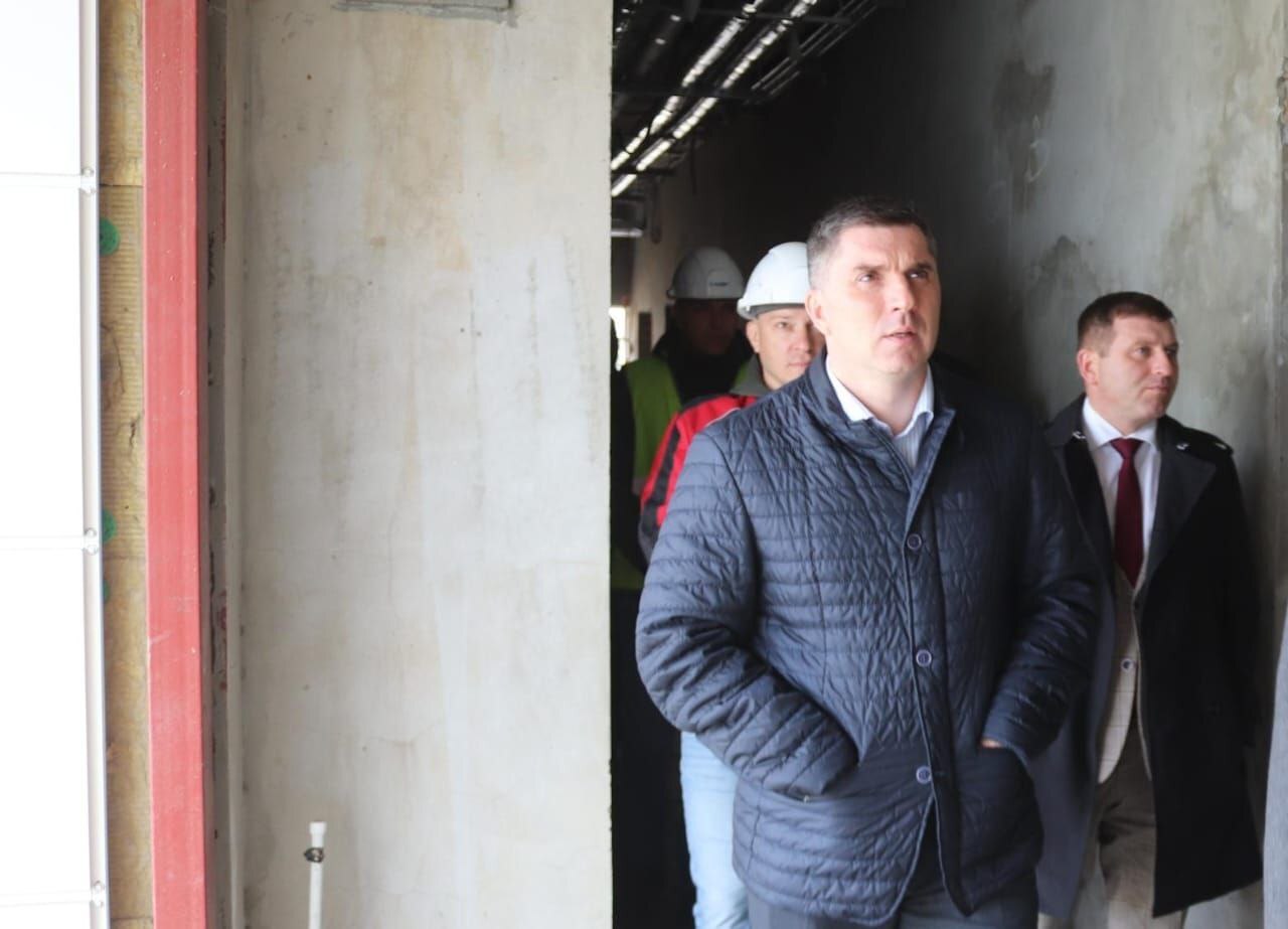 Процесс строительства главной спортивной арены города Шахты проконтролировали заместитель министра строительства, архитектуры, территориального развития Ростовской области Михаил Кривенков, а также начальник управления капитального строительства министерства Артур Мелькумов.