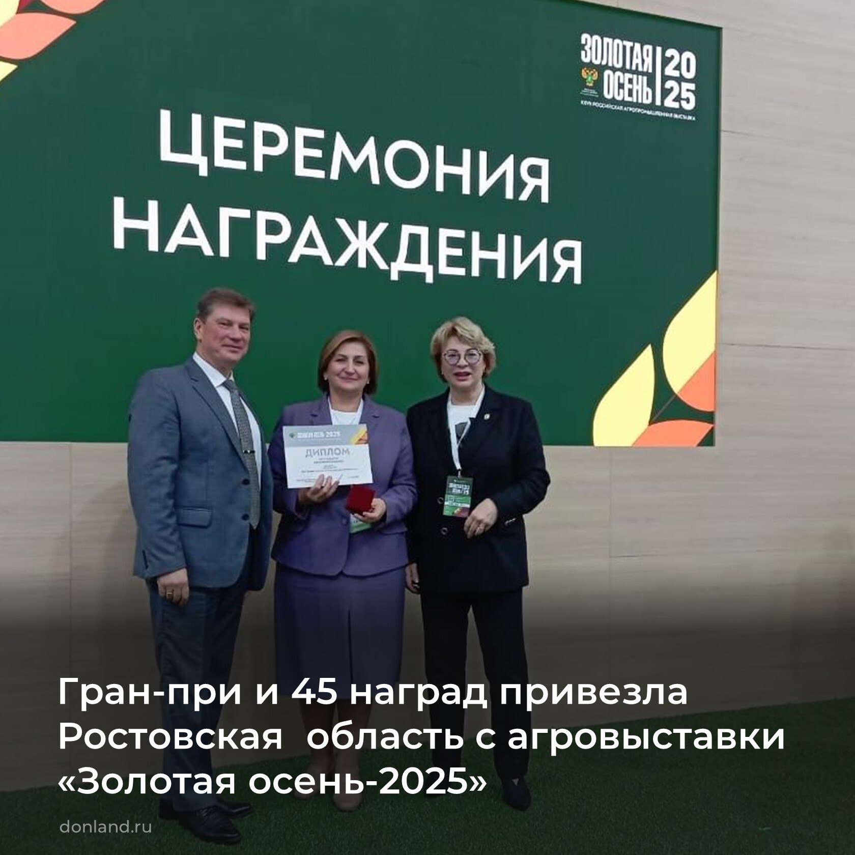 Гран-при за вклад в развитие выставки, 45 наград различного достоинства, договоренности о реализации инвестпроектов и соглашений на поставки продукции – итоги участия делегации области в Российской агропромышленной выставке «Золотая осень-2025».