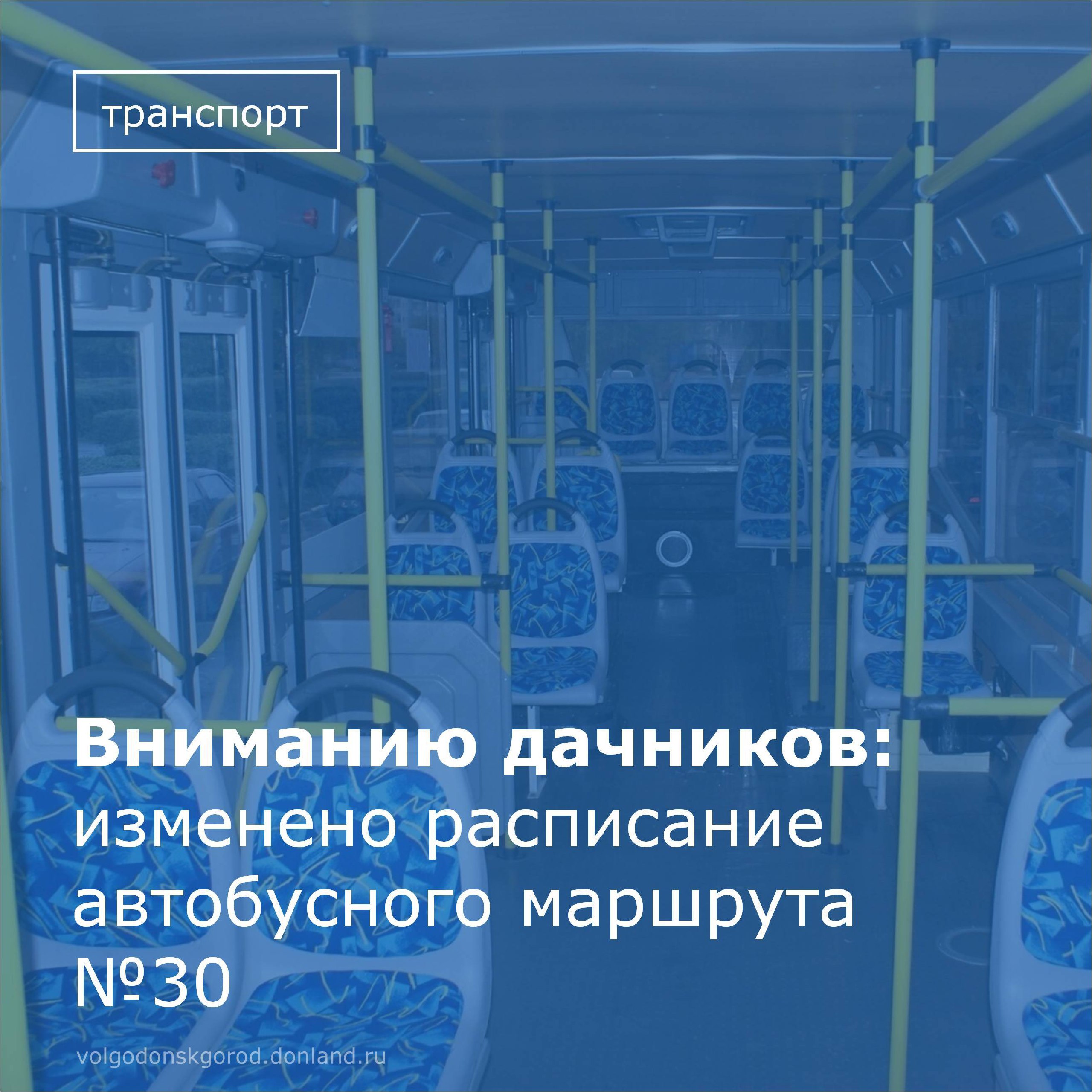 Администрация Департамента строительства и городского хозяйства сообщает о корректировке расписания движения автобусов по дачному маршруту №30