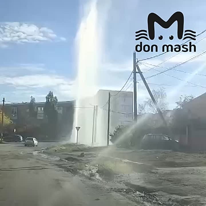 Так автор видоса описал мощнейший коммунальный прорыв в Шахтах. Говорит, струя воды бьет аж до четвертого этажа. Вангуем, жильцы ближайших домов начали день с контрастного душа.