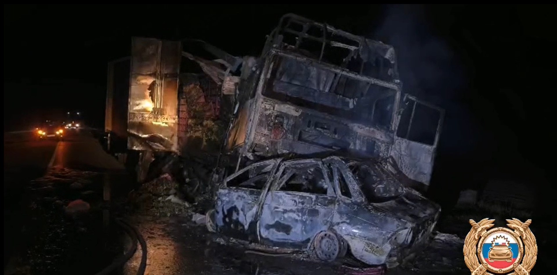Второе происшествие случилось на автодороге Элиста — Зимовники. Lada Priora выехала на встречную полосу и столкнулась с автомобилем DAF. Обе машины загорелись. В результате ДТП погиб 19-летний водитель автомобиля Lada Priora и его пассажир.
