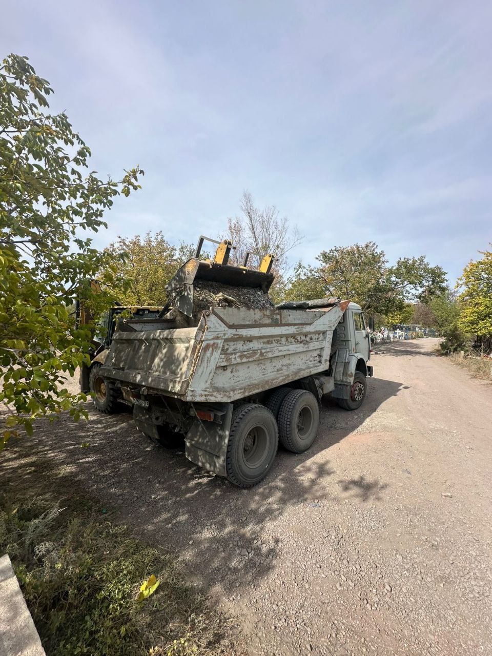 Ранее был задействован ломовоз, теперь работы ведутся с применением малогабаритной техники: КамАЗ, трактор - они более мобильны в условиях небольших проездных маршрутов. Вывозятся тонны растительного и строительного мусора.