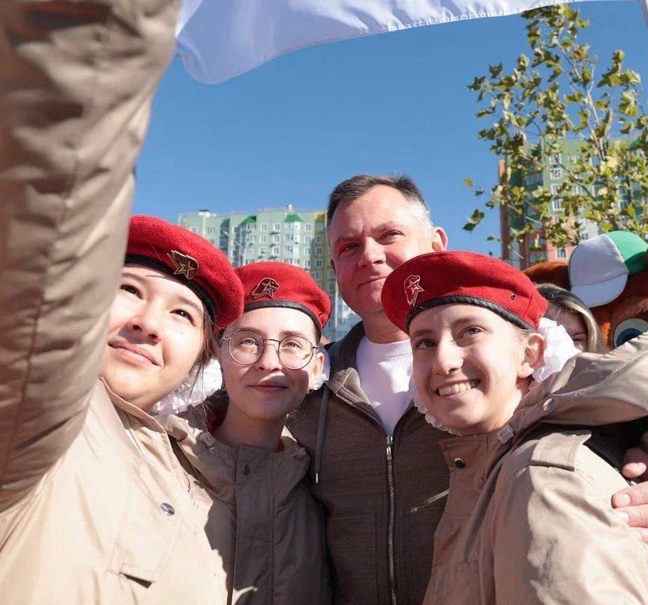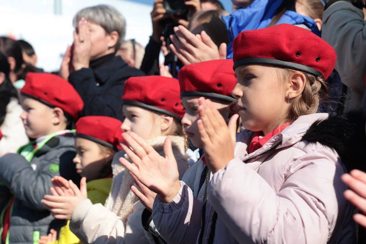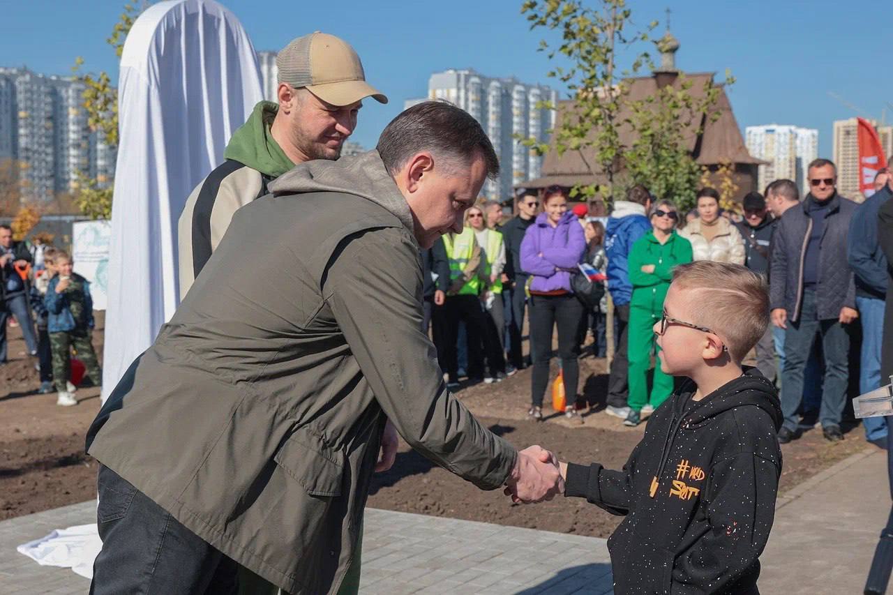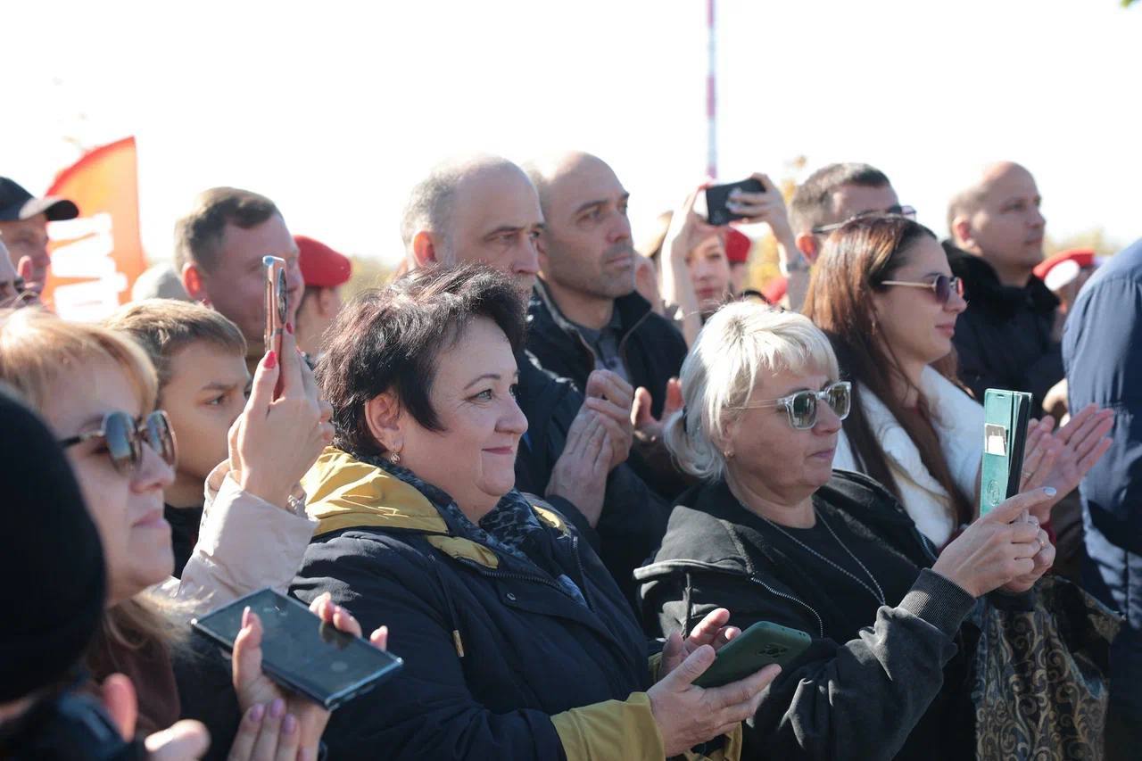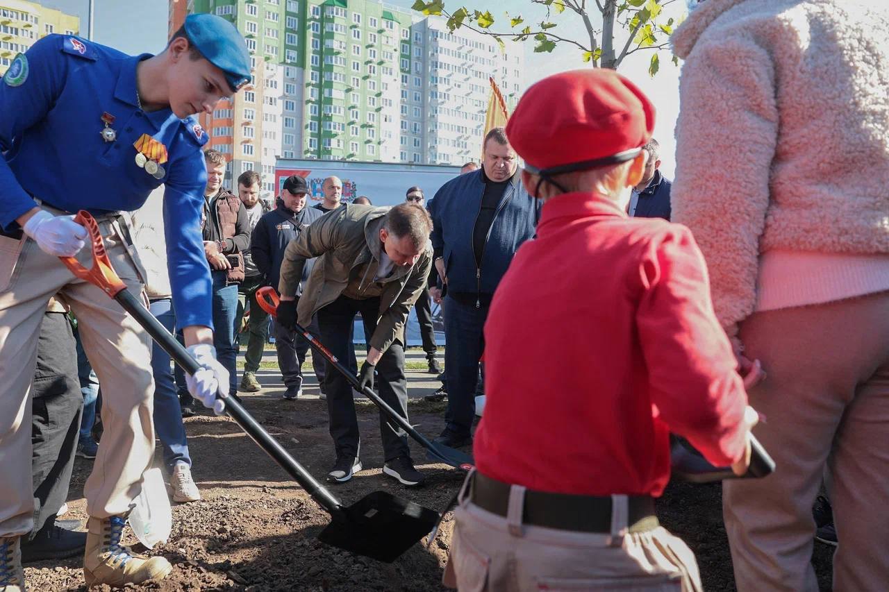 Вместе с участниками спецоперации, участниками программы «Время Героев», юнармейцами открыли памятный знак в честь закладки Аллеи Памяти.