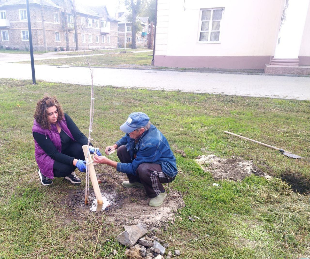 День древонасаждения продолжается в шахтинских поселках: на Майском зелёные легкие сквера имени М. П. Чиха насытили новыми деревьями: высадили сакуры - декоративную вишню, вязы, ясени.