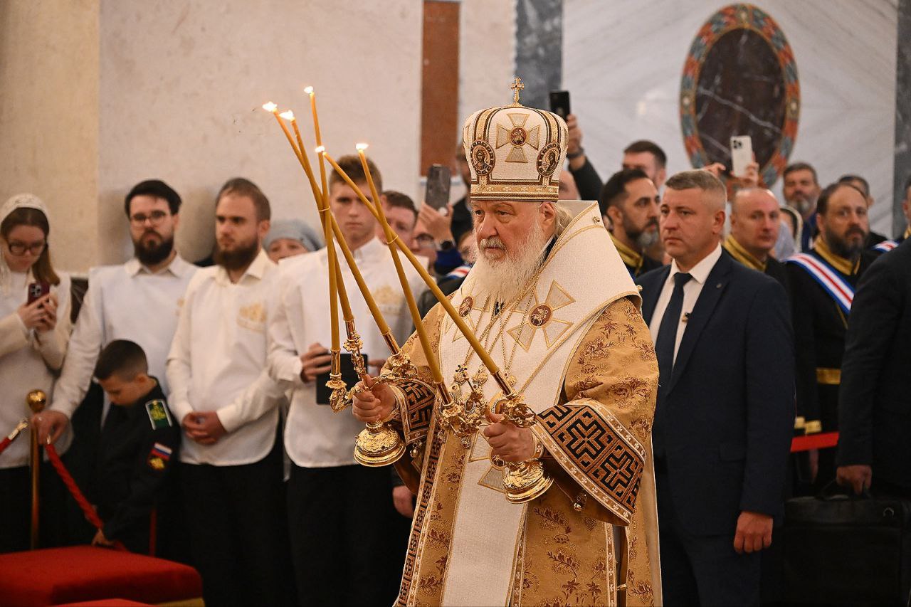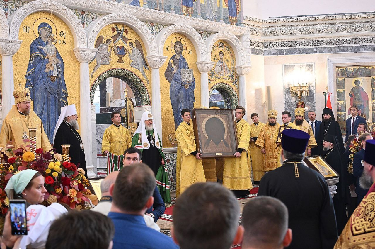 Как символ благой вести пасмурное до того небо озарилось ярким солнцем именно в тот момент, когда Патриарх Московский и всея Руси Кирилл завершил обряд освящения Храма святого великомученика Георгия Победоносца