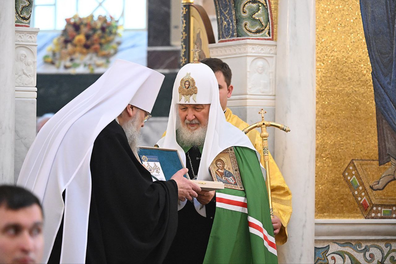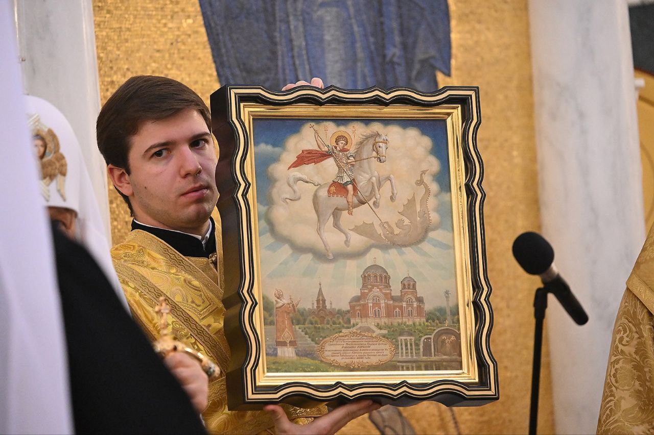 Как символ благой вести пасмурное до того небо озарилось ярким солнцем именно в тот момент, когда Патриарх Московский и всея Руси Кирилл завершил обряд освящения Храма святого великомученика Георгия Победоносца.