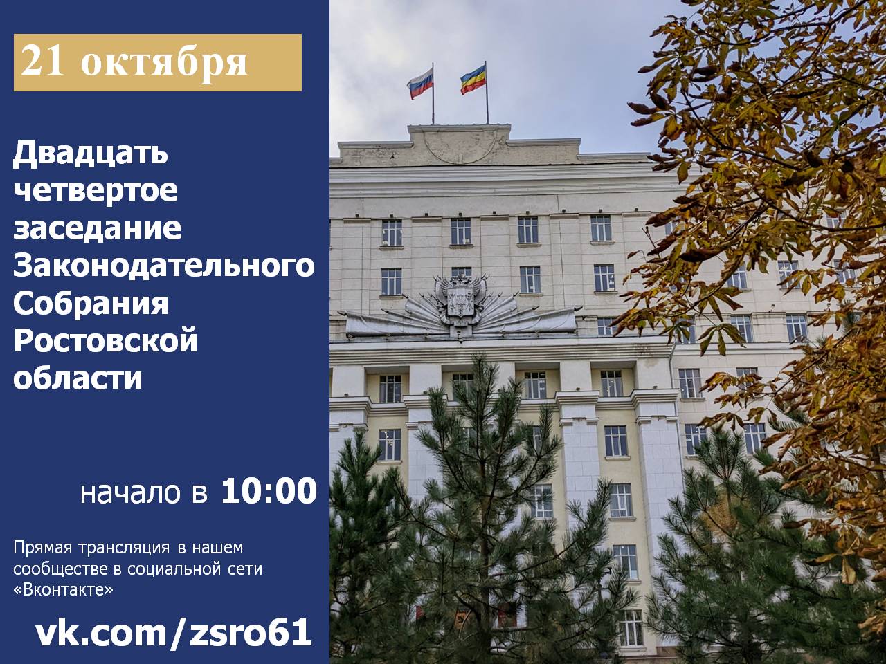 21 октября состоится 24-е заседания Законодательного Собрания Ростовской области.