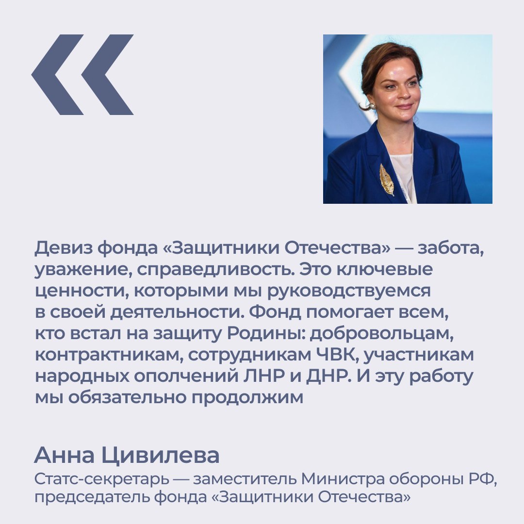 С такой инициативой выступила председатель фонда Анна Цивилева на заседании Наблюдательного совета структуры, оказывающей помощь ветеранам СВО и их семьям.