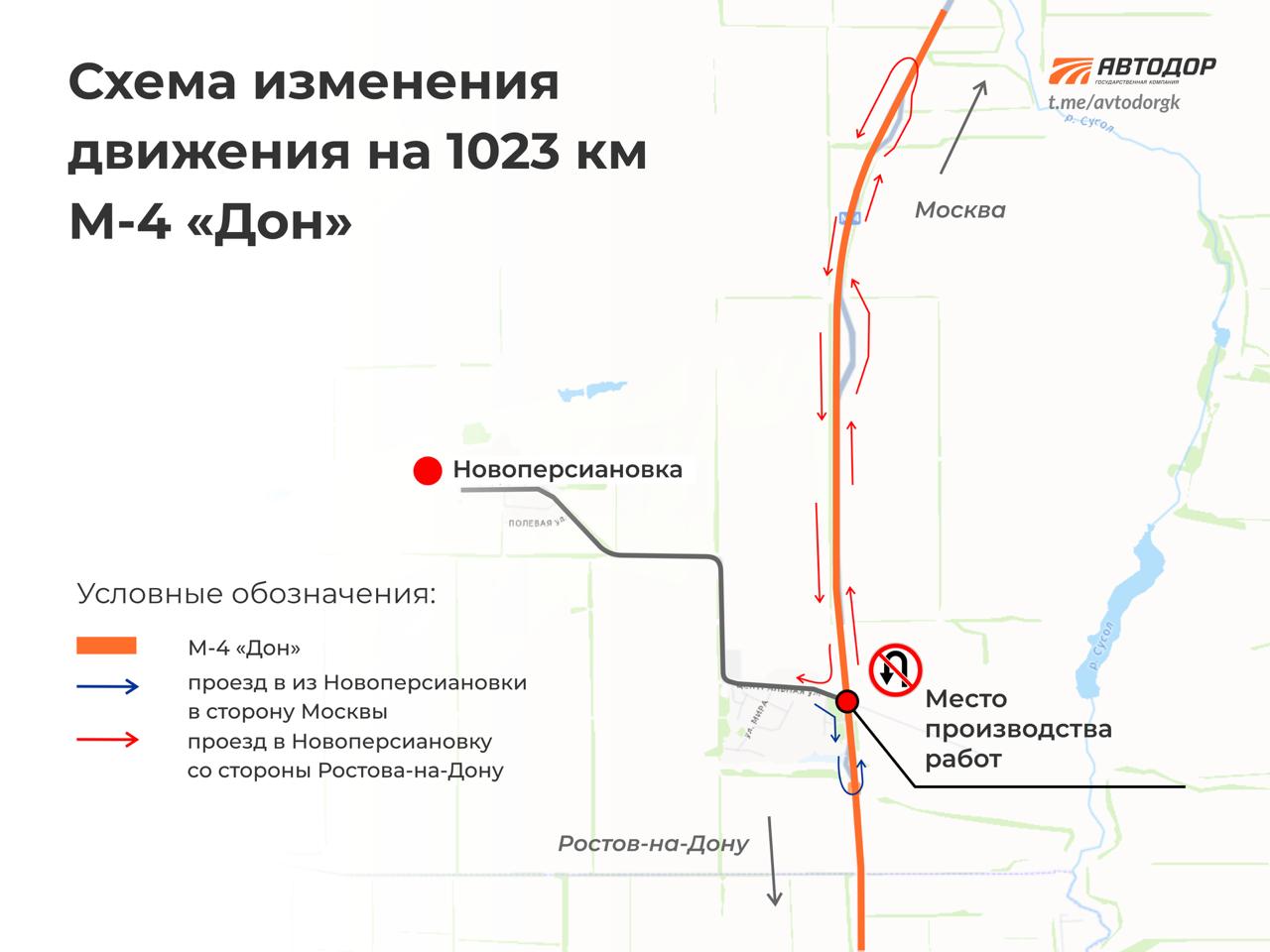 С 25 октября перекроют разворот к поселку Новоперсиановка на 1023 км автодороги М-4 «Дон». Об этом сообщили в пресс-службе ГК «Автодор».