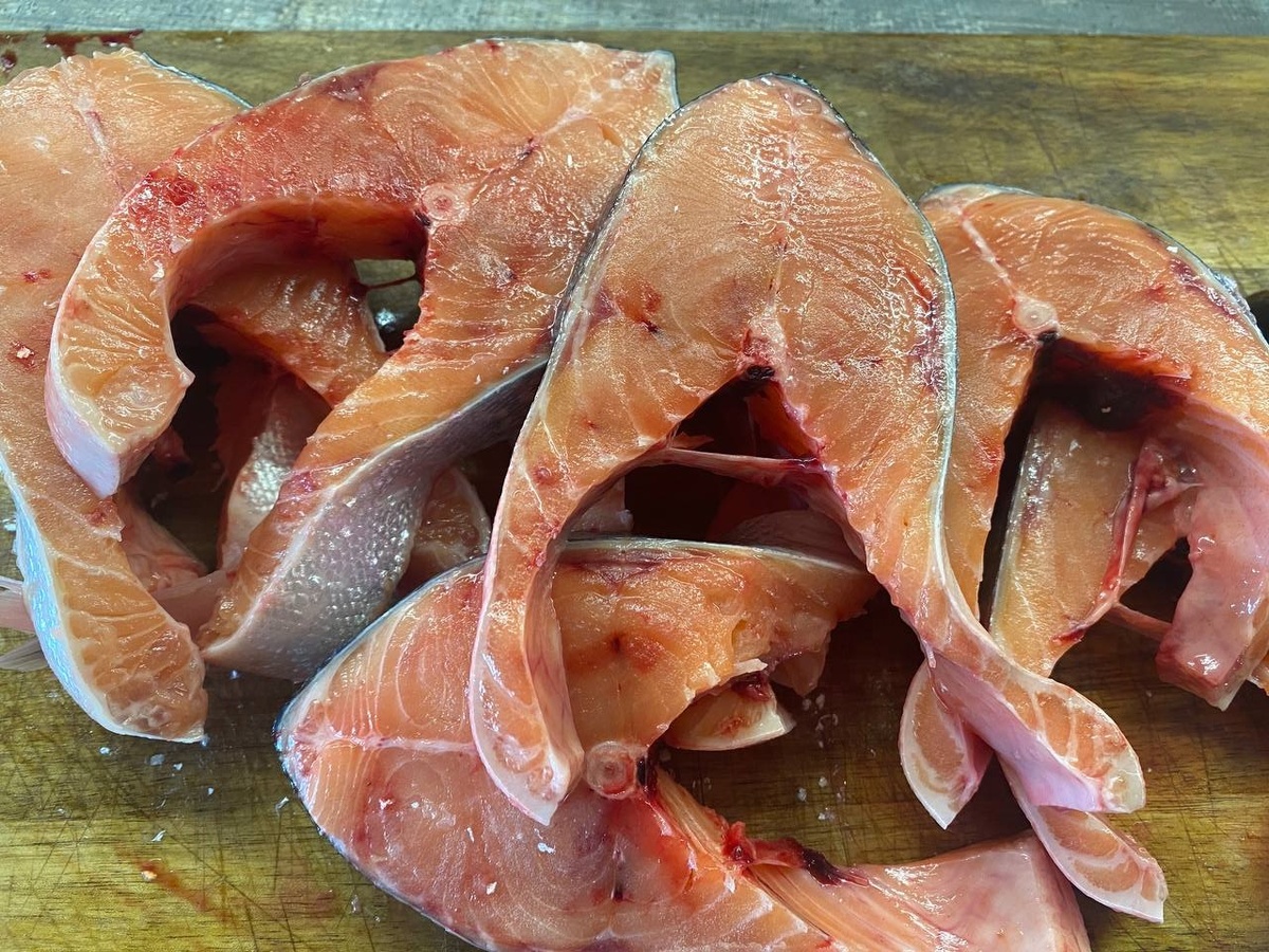 2. Позвольте рассолу остыть до комнатной температуры. В это время подготовьте рыбу, нарезав её на кусочки, чтобы ускорить процесс засолки. Куски будут готовы гораздо быстрее, чем целая рыба.