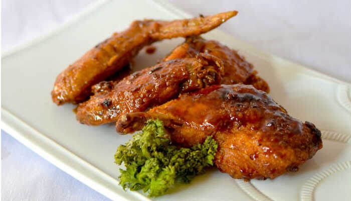 Перед началом приготовления крылышки следует хорошенько посолить. Затем их орошают соевым соусом и добавляют подсолнечное масло вместе с медом — не стоит беспокоиться о сладковатом привкусе: мед необходим для красивого вида. После этого вводим специи, включая куркуму, паприку и выдавленный чеснок. Все тщательно перемешиваем, добросовестно обмакивая каждое крылышко в маринаде. Оставить мариноваться на 40-60 минут, а затем размещаем в форме для запекания и поливаем остатками маринада. Отправляем в заранее разогретую духовку на 50-60 минут, пока не станет золотистыми и хрустящими.