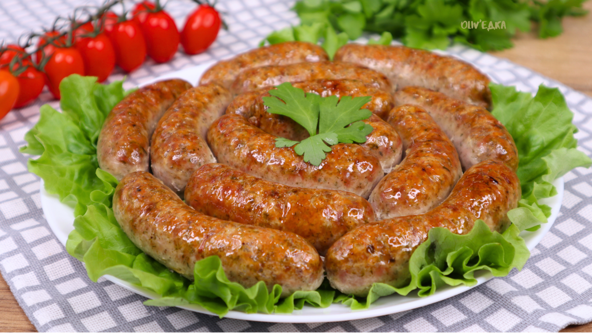 Всего 40 минут запекания с перерывом для подрумянивания, и колбаски будут готовыми к подаче. Таким образом, домашние колбаски получаются невероятно вкусными, сочными, без всякой химии!
