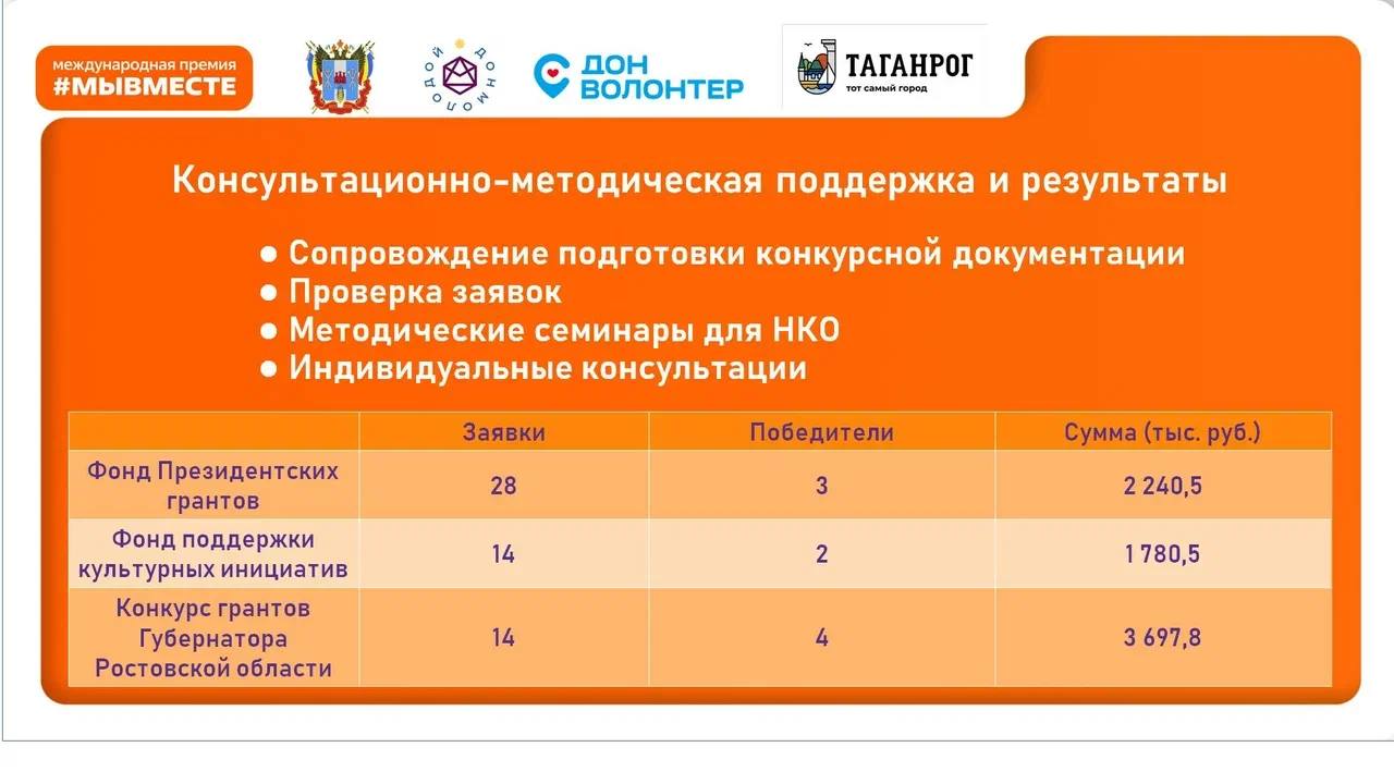 Например, в 2025 году СО НКО города Таганрога направлено 56 заявок для участия в грантовых конкурсах всех уровней.