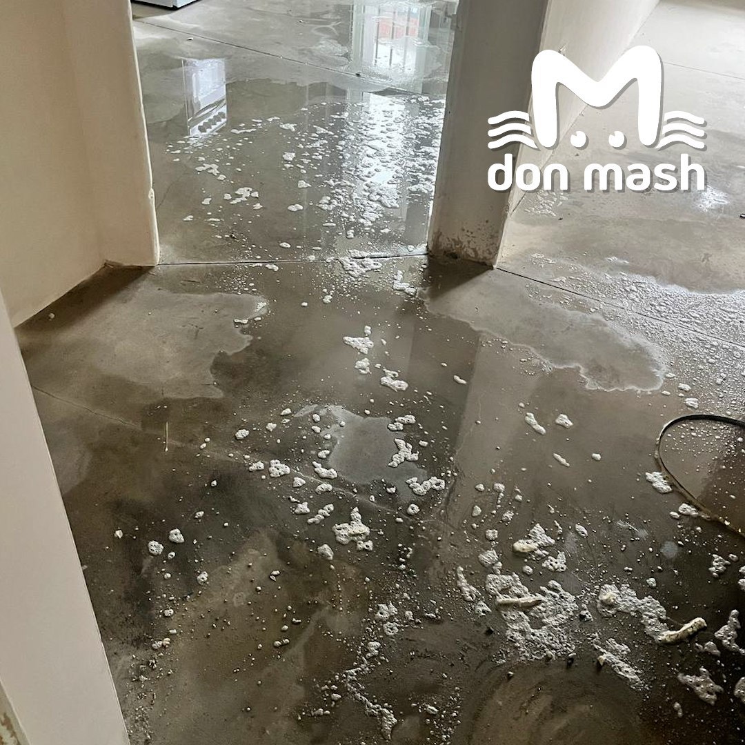Люди рассказали, что текущий кран на лестнице заметили сегодня. Позвонили в управляйку и застройщику "ЮСИ-Дон", но там никто не ответил. Пришлось самим аккуратно перекрыть вентиль и весь день сушить полы со стенами.