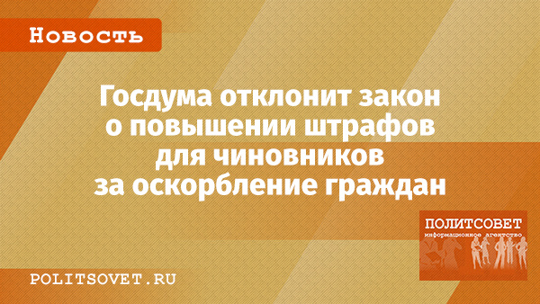 Комитет Государственной думы по госстроительству настоятельно рекомендовал отклонить законопроект, который предусматривал повышение штрафов для чиновников за оскорбление российских граждан. Эта инициатива исходила от депутатов Владимира Плякина и Амир Хамитова, представляющих партию «Новые люди».