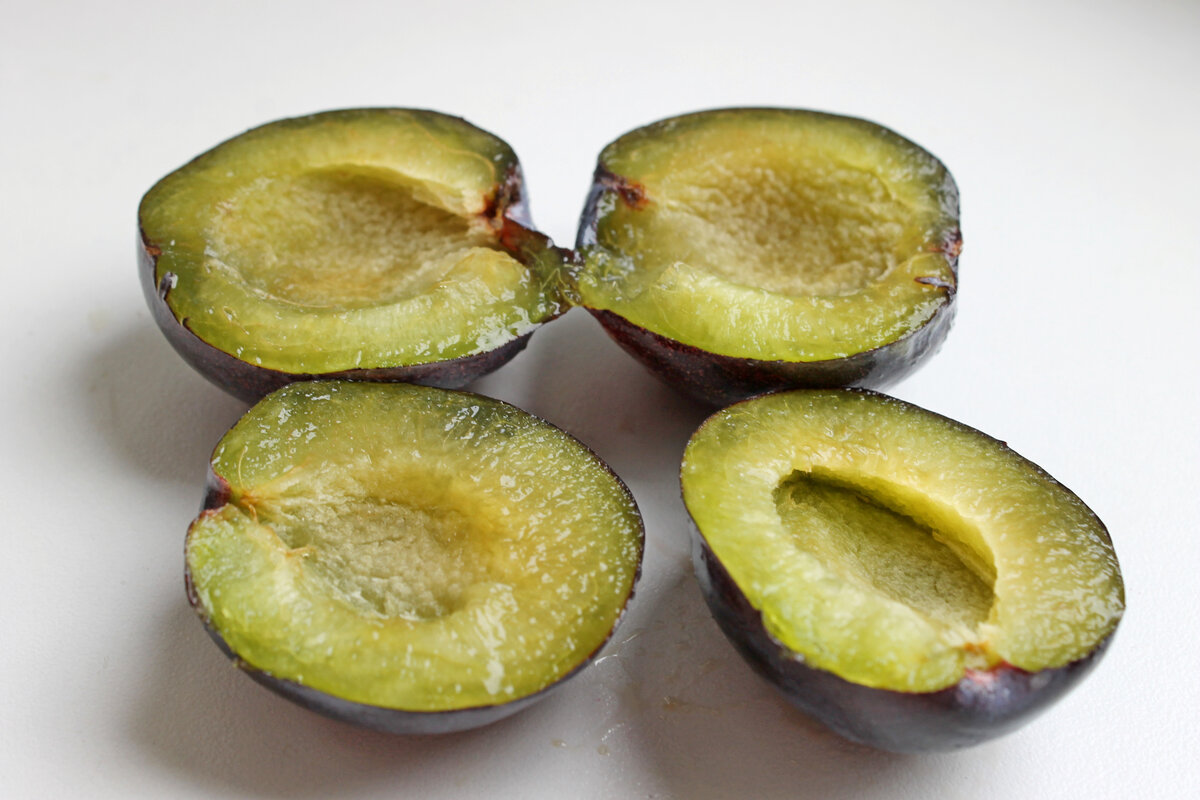Для начала взять 600 грамм спелых слив и 300 граммов сахара. Сначала сливы с сахаром можно оставляем в широкой миске, позволяя фруктам пустить сок. Перемешивая их, стоит уделить внимание, чтобы каждая ягодка хорошо поддалась давлению.