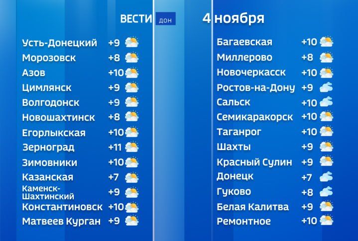 Сегодня праздничный осенний день порадует жителей Ростовской области солнечной погодой с переменной облачностью. Скорость ветра ожидается 3-6 м/с с порывами до 12 м/с.