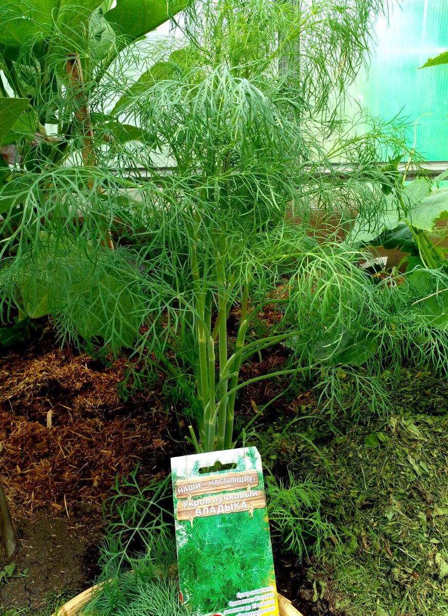 Укроп 'Владыка' относится к среднеспелым сортам, тип роста которого пучковой. Он формирует компактные кусты высотой около 70 см в теплице, с ярко-зелеными, не грубеющими стеблями. Крупные, нежные и ароматные листья насыщенного зеленого цвета почти никогда не желтеют, что делает этот сорт особенно привлекательным для городских огородников.