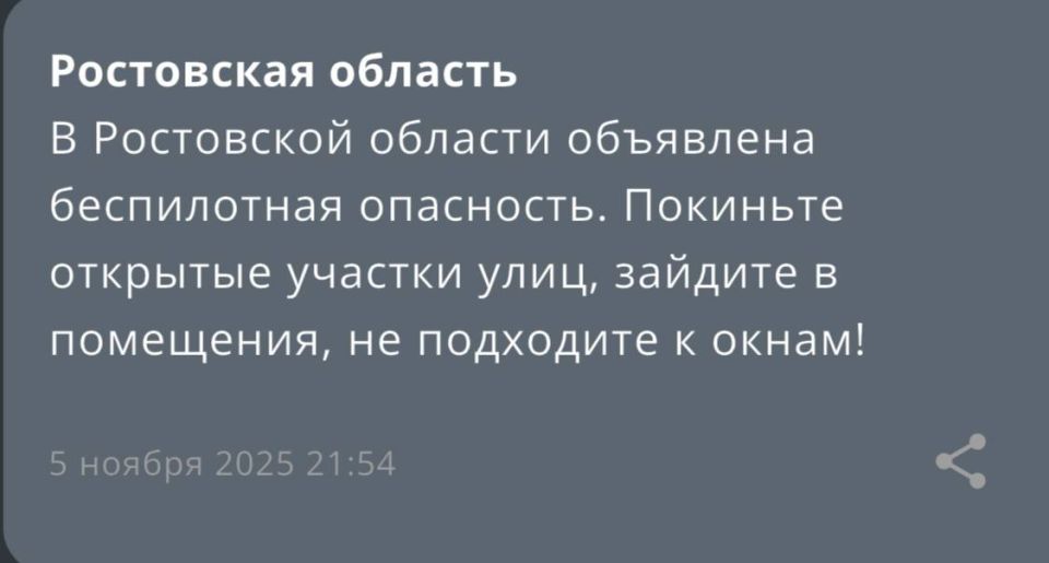 В Ростовской области объявили беспилотную опасность. Дончан просят соблюдать осторожность!