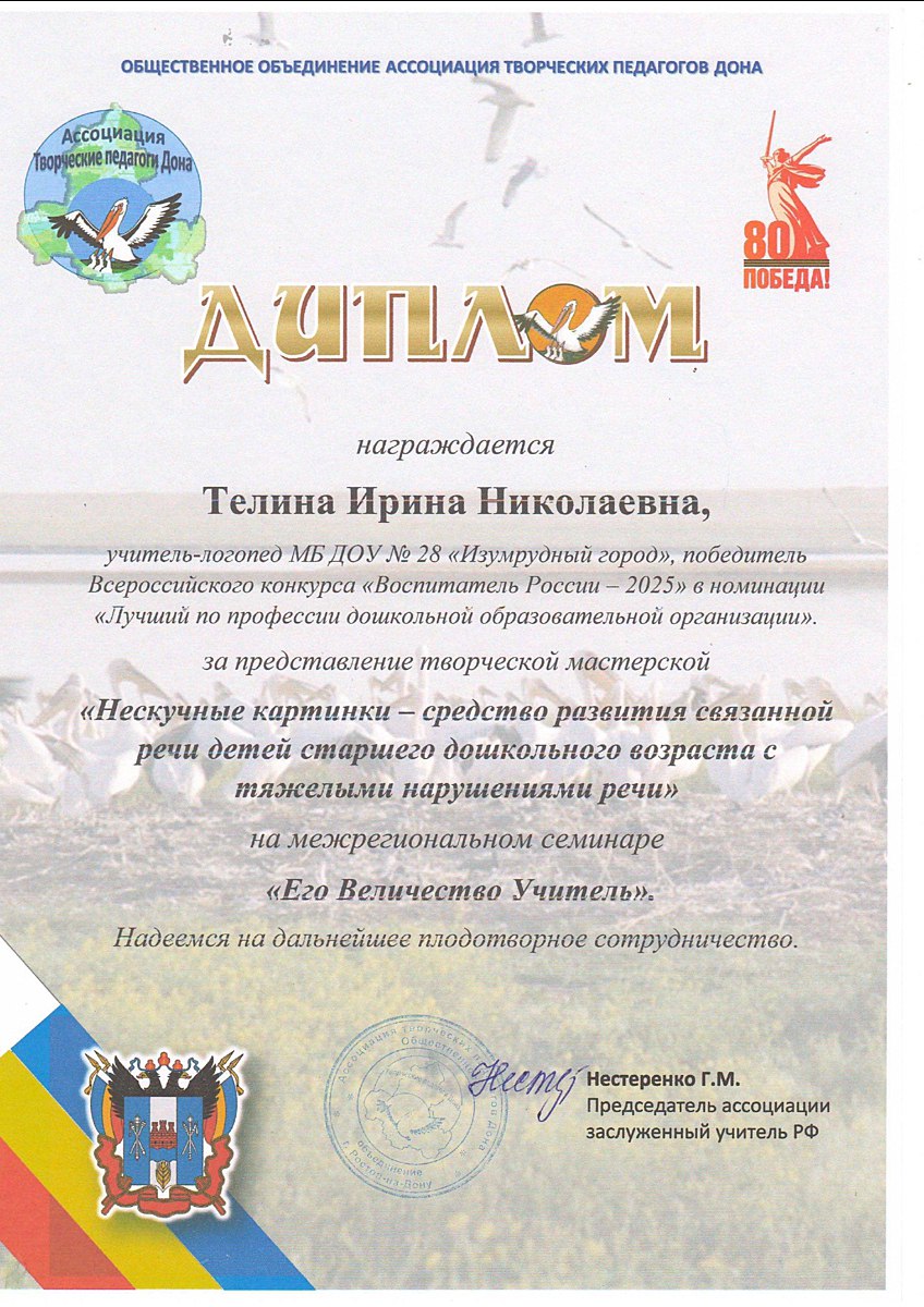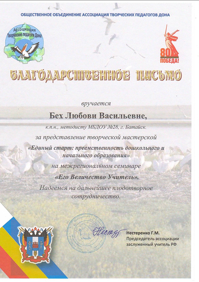 С 30 октября по 3 ноября в п. Лазаревское прошёл межрегиональный семинар «Его Величество Учитель», где педагоги 28 детского сада делились опытом и представляли Батайск.