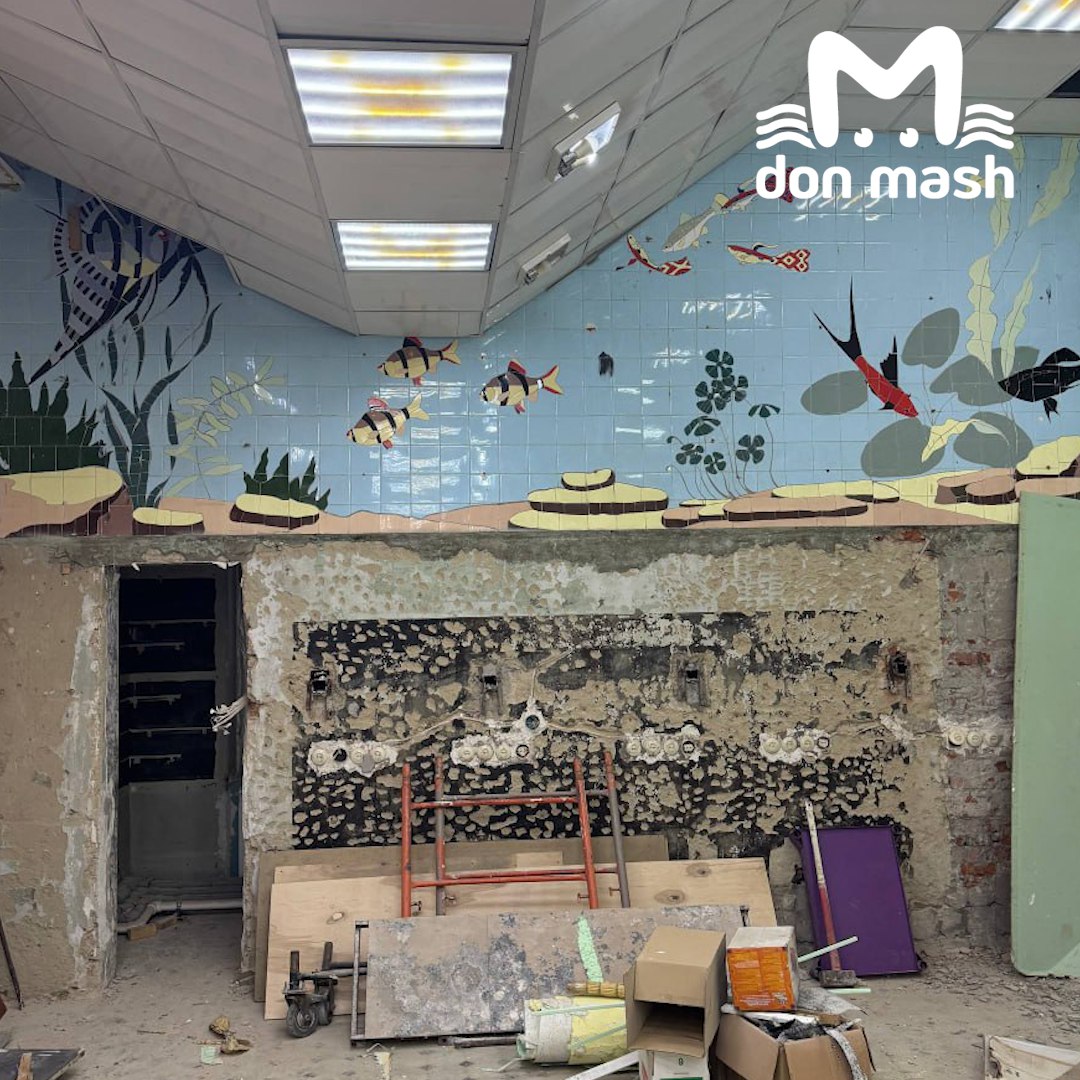 Советскую мозаику нашли активисты в бывшем зоомагазине в Ростове. Собственник здания сначала пообещал сохранить её, а теперь рабочие уже ломают стены.