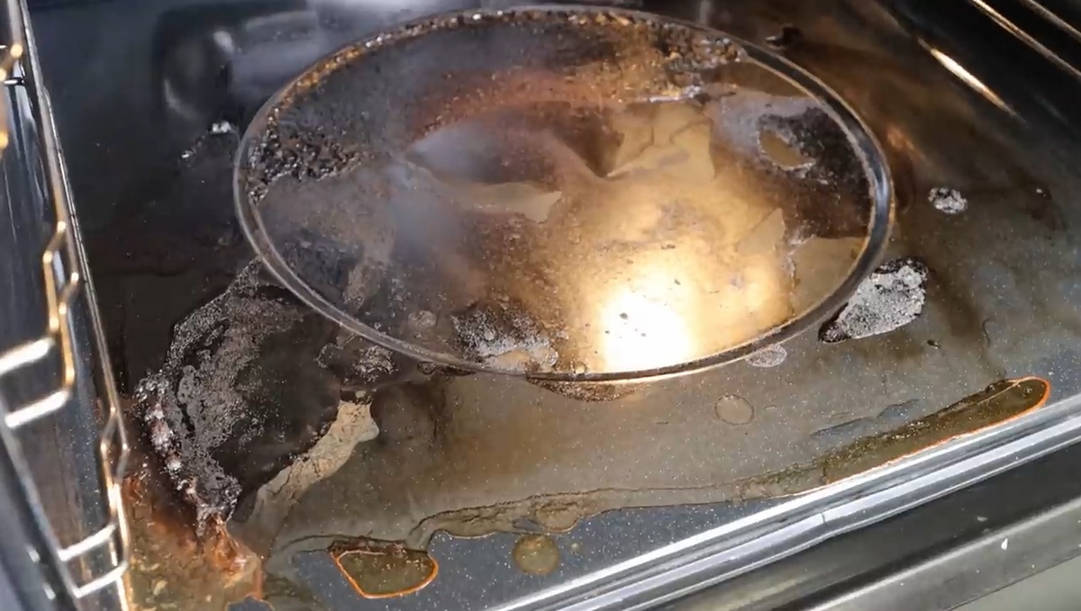 Поместите противень с раствором в разогретую духовку до 200-250 градусов. Добавьте немного воды на дно, чтобы нагрев ускорил процесс. Закройте дверь духовки и оставьте все на 15-30 минут, в зависимости от степени загрязнения. Пары будут эффективно действовать на загрязнения, размягчая жир и нагар.