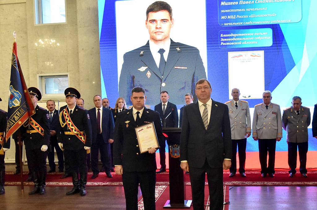 Председатель Законодательного Собрания выразил благодарность сотрудникам Главного управления МВД России по Ростовской области за активное взаимодействие с донским парламентом в выработке мер по защите прав граждан, профилактике преступлений и борьбе с мошенничеством. Он отметил, что совместная работа привела к принятию многих важных решений на региональном уровне, направленных на защиту прав несовершеннолетних и предупреждение молодежной преступности.