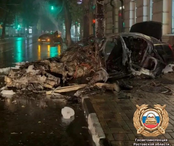 Машина сгорела после столкновения с опорой ЛЭП в Ростове