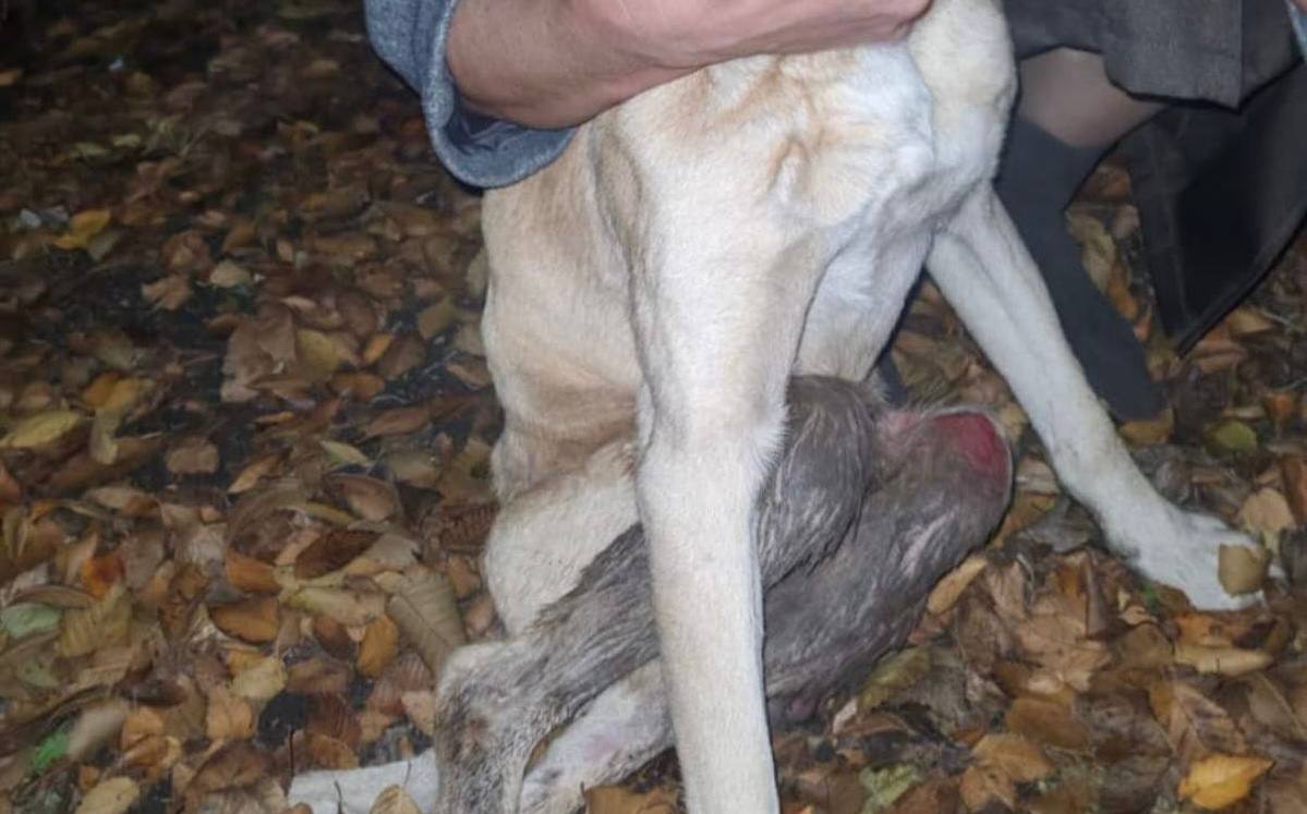 Очевидцы обнаружили собаку в мешке, перемотанном скотчем. Освободив её, люди увидели, что животное едва живо: оно могло двигаться только на передних лапах, задние конечности были переломаны, шерсть пропитана кровью. Собаку отвезли к ветеринару, где ей оказали первую помощь. Состояние животного оценивается как тяжелое.