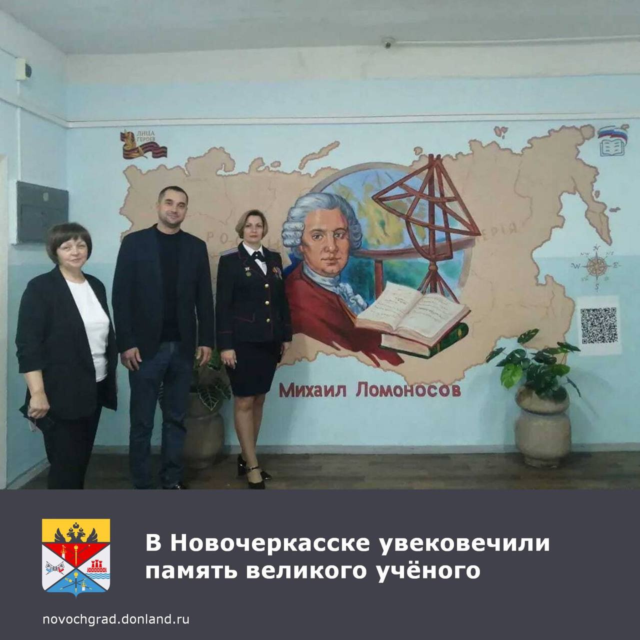 В школе №15 города Новочеркасска состоялось торжественное открытие мурала, посвящённого Михаилу Васильевичу Ломоносову — первому крупному русскому учёному-естествоиспытателю, поэту и просветителю.