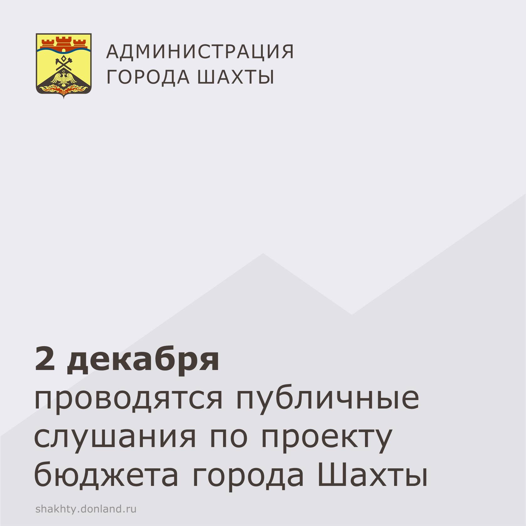2 декабря 2025 года в 14.00 часов по адресу: ул.Советская, 158, большой зал Администрации города Шахты проводятся публичные слушания по проекту решения городской Думы «О бюджете города Шахты на 2026 год и на плановый период 2027 и 2028 годов».
