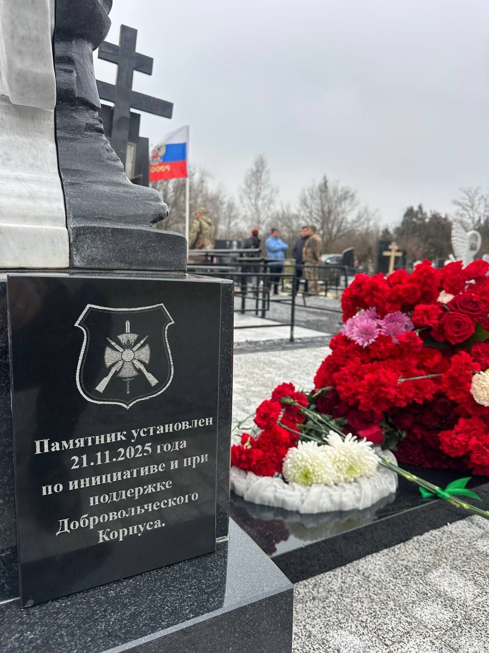 Памятник был установлен и открыт при поддержке Добровольческого корпуса России и застройщика «Твой Дом» на кладбище Красный Сад.