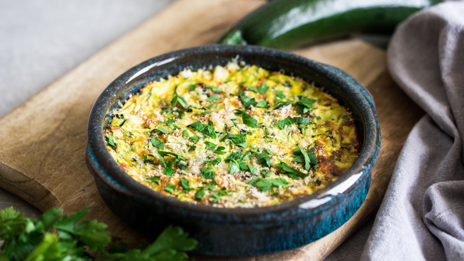На крупной терке измельчите два средних кабачка, посолите, подождите 10 минут, отожмите сок и вылейте. К мякоти добавьте 70 граммов тертого сыра, полстакана молока, три яйца, ? стакана муки и чайную ложку разрыхлителя. Перемешайте тщательно все ингредиенты и оставьте в тепле на полчаса.