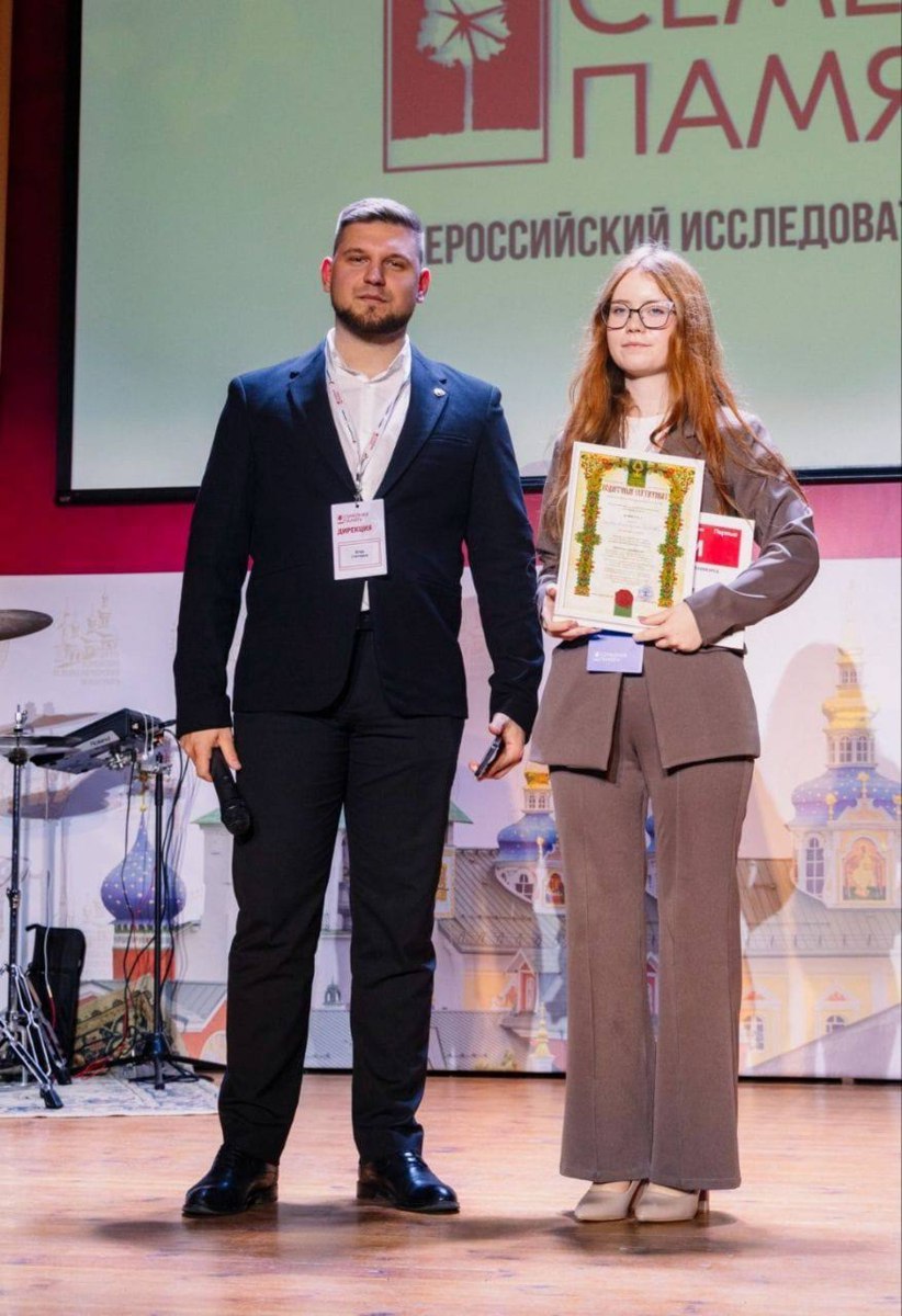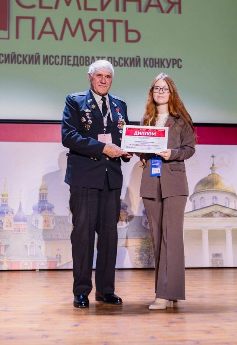 В Псковской области прошёл Финал всероссийского конкурса «Семейная память». Ученица 11 «Б» класса Анастасия Гельвер вошла в число финалистов и представила исследование о боевом пути своего прадеда — донского казака из 11-й Гвардейской казачьей дивизии.