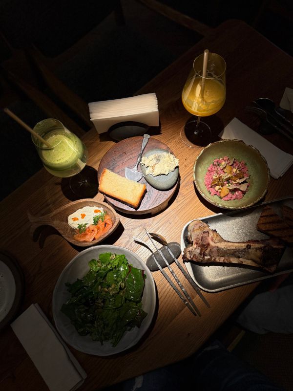 Не только еда в «Айне» была обновлена. Интерьер ресторана создает уникальную атмосферу – уютная «пещера», наполненная теплом огня и ароматами свежей выпечки. Деревянные элементы, солома и камни создают атмосферу близости к природе, приглашая гостей наслаждаться не только блюдами, но и обстановкой.