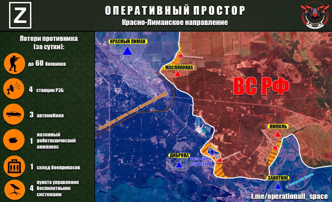 На Красно-Лиманском направлении ВС РФ улучшили тактическое положение в районе Красного Лимана и Ямполя, сообщает "Оперативный простор":
