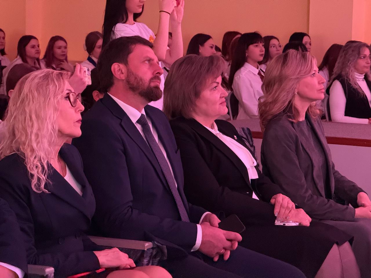 Глава города Людмила Овчиева с Депутатом Госдумы Екатериной Стенякиной, председателем городской Думы города Шахты Максимом Голодовым посетили техникум, где учатся около 900 студентов по 10 направлениям, в том числе дети-сироты.