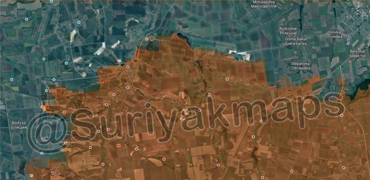 Осуществлено продвижение на западном и юго-западном направлениях от Тихого. Взяты под контроль складские комплексы, прилегающие к реке Волчья.